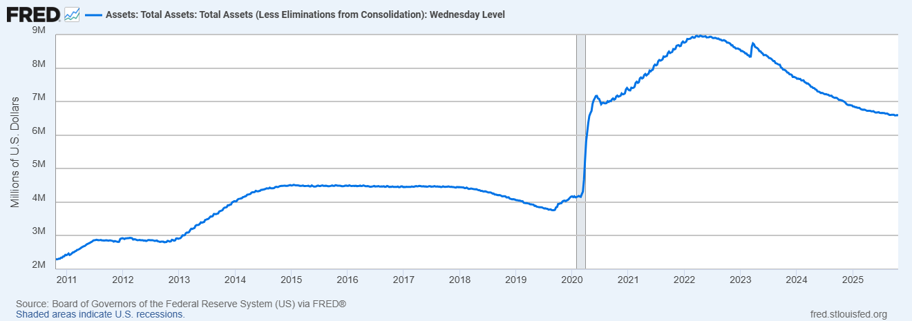 There’ll be no more runoff of Treasuries and as old ones on the balance sheet mature, the Fed will simply buy new ones to replace them. However, this only stops the destruction of bank reserves—it doesn’t increase them.