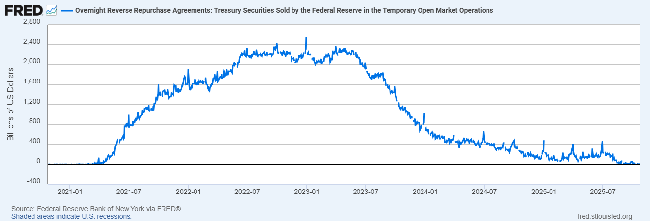 Reverse repos pay interest just like bank reserves, and there’s only a few basis points difference in the rates. In both cases, the Fed is keeping liquidity on the sidelines—ready for action, but out of the fray.
