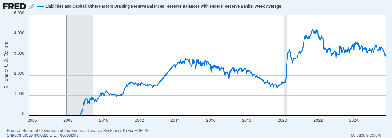 What Powell & Co. are really laser focused on right now is liquidity and bank reserves, the latter being the money that banks have parked at the Fed. For about a century, the only reason banks kept money parked idle in the Fed vaults was because they had to.
